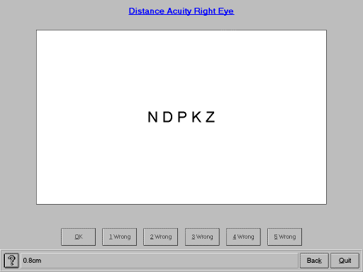 Results are converted into the snellen equivalent (relating to 6/6, 1,0 or 20/20 scale).